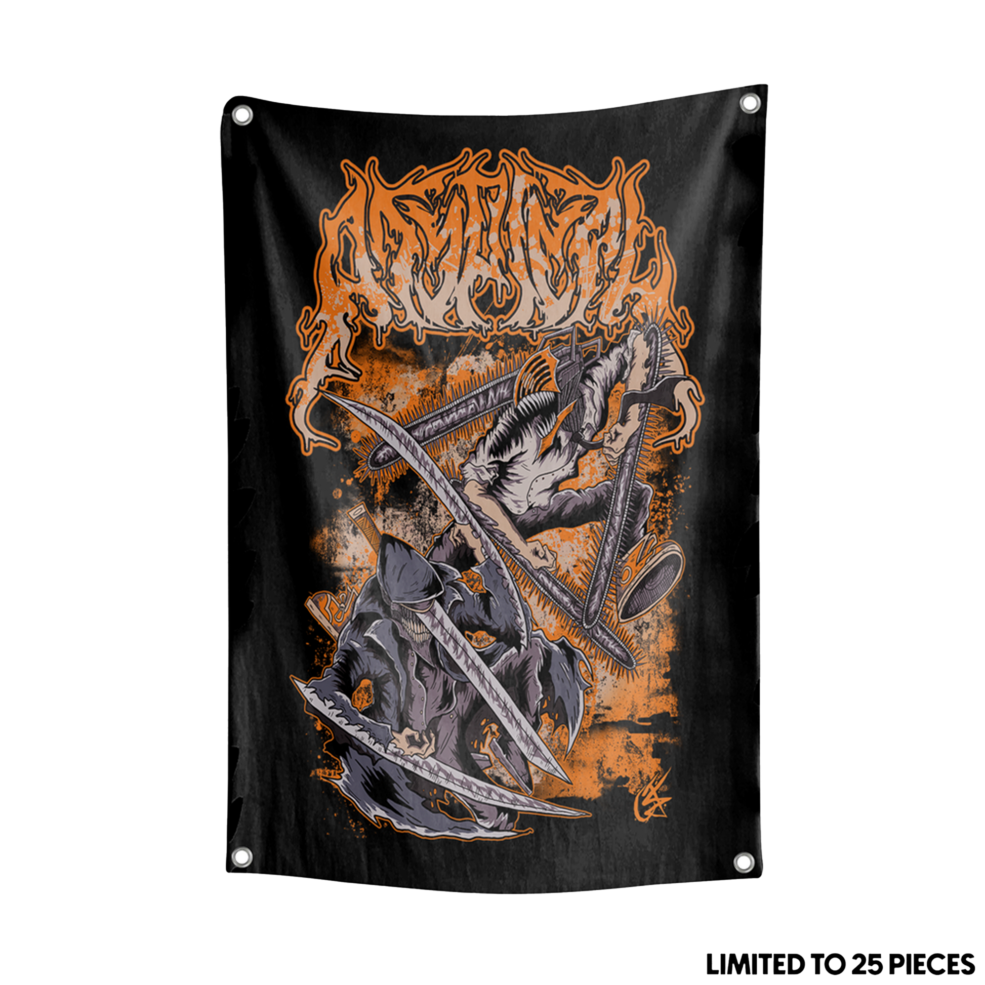 Annihilate boring walls with the Chainsaw V. Katana Wall Flag! Repping your favorite limited edition anime, this unique wall flag brings excitement and flavor to any abode. Spice up the scene with Chainsaw Man’s chainsaw vs. katana showdown!