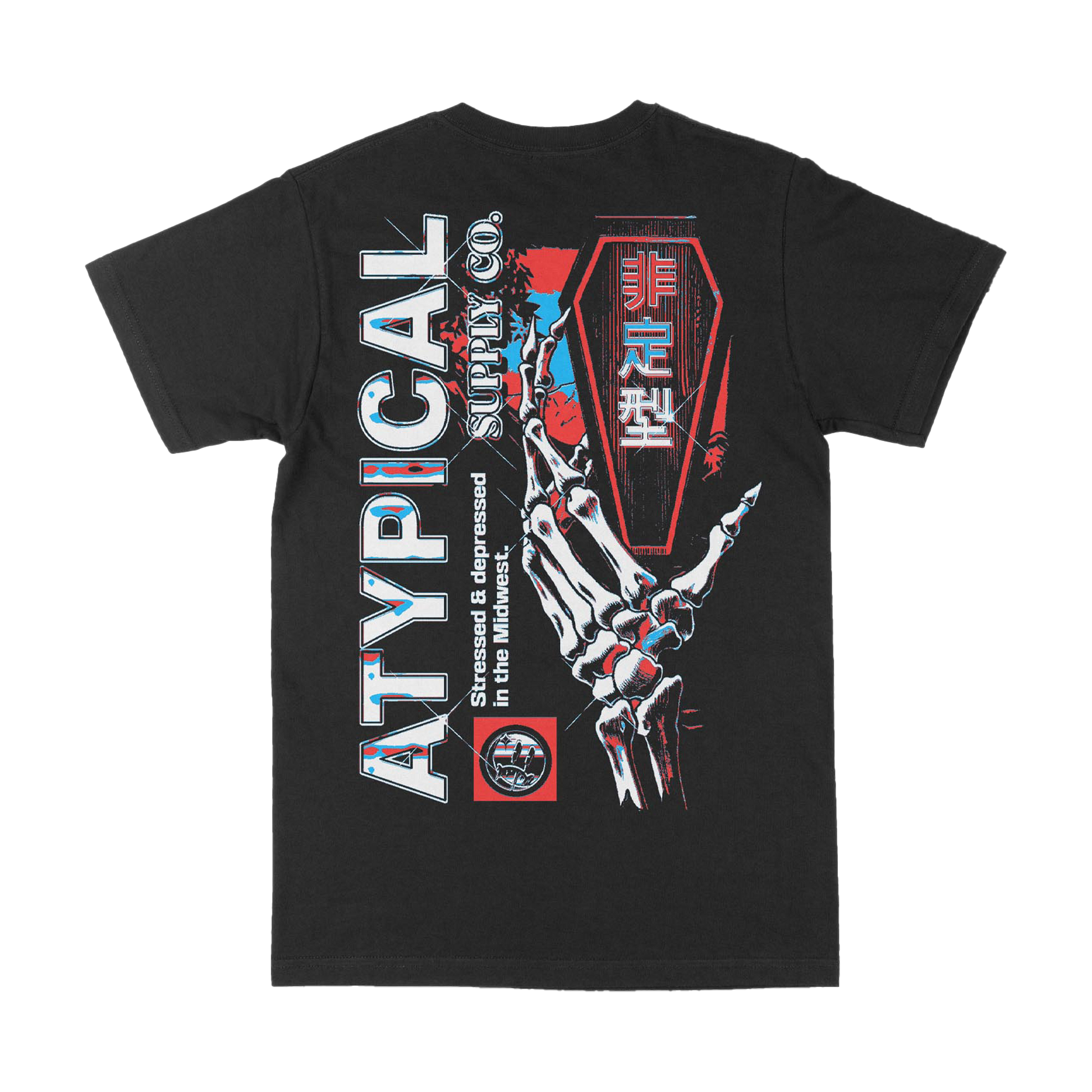 Embrace the macabre with our Coffin Vintage Tee, where death has never looked so stylish! Designed by Andy Glass, this playful twist on a classic Atypical design brings the unexpected to your wardrobe. Wear it to turn heads, start conversations, or simply remind everyone that your fashion sense is anything but dead and buried!